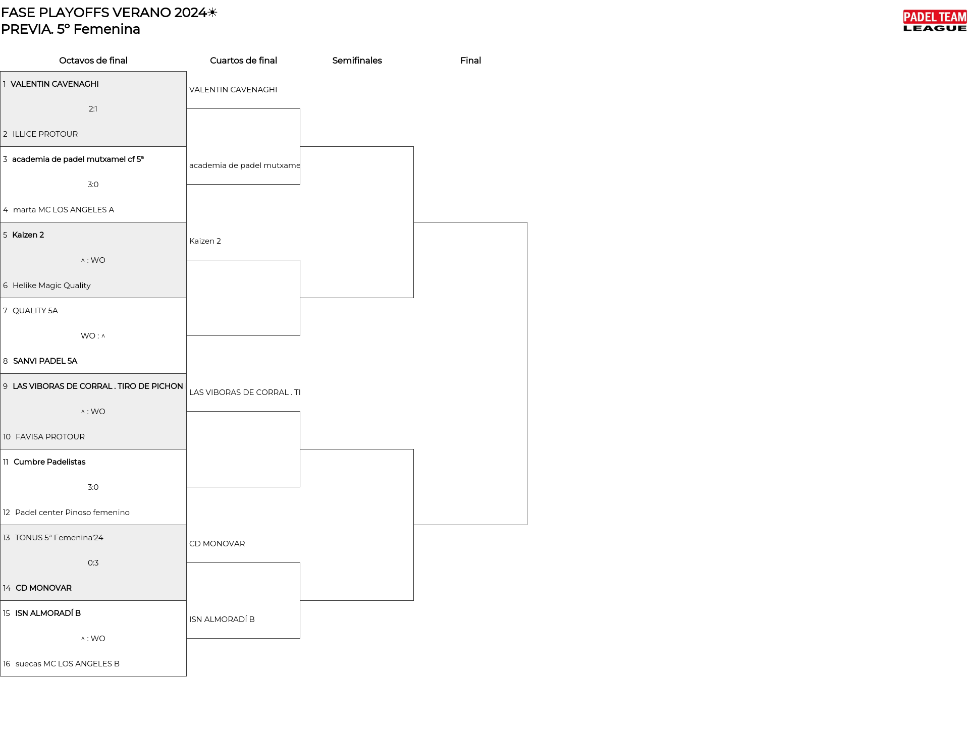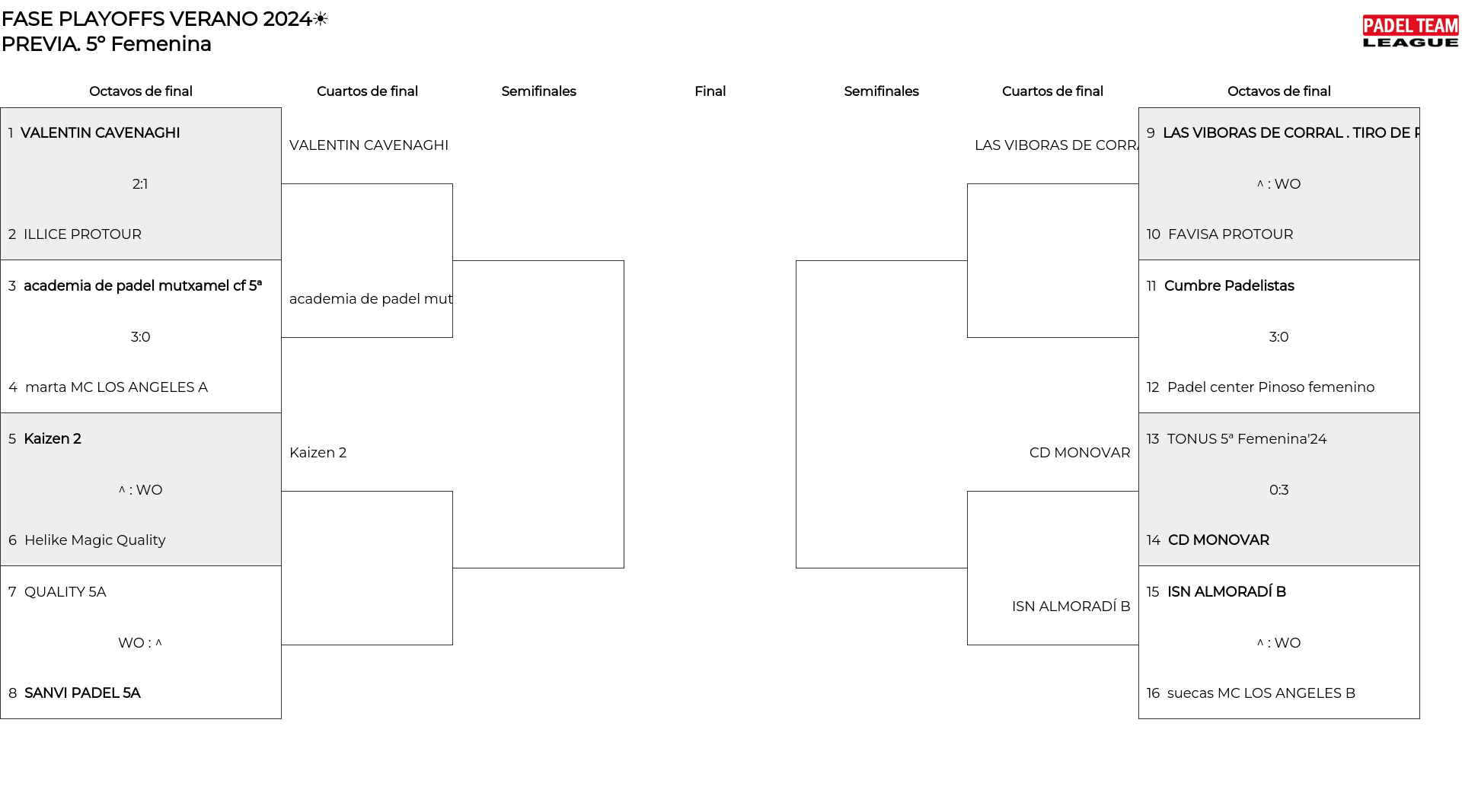 5º Femenina main bracket