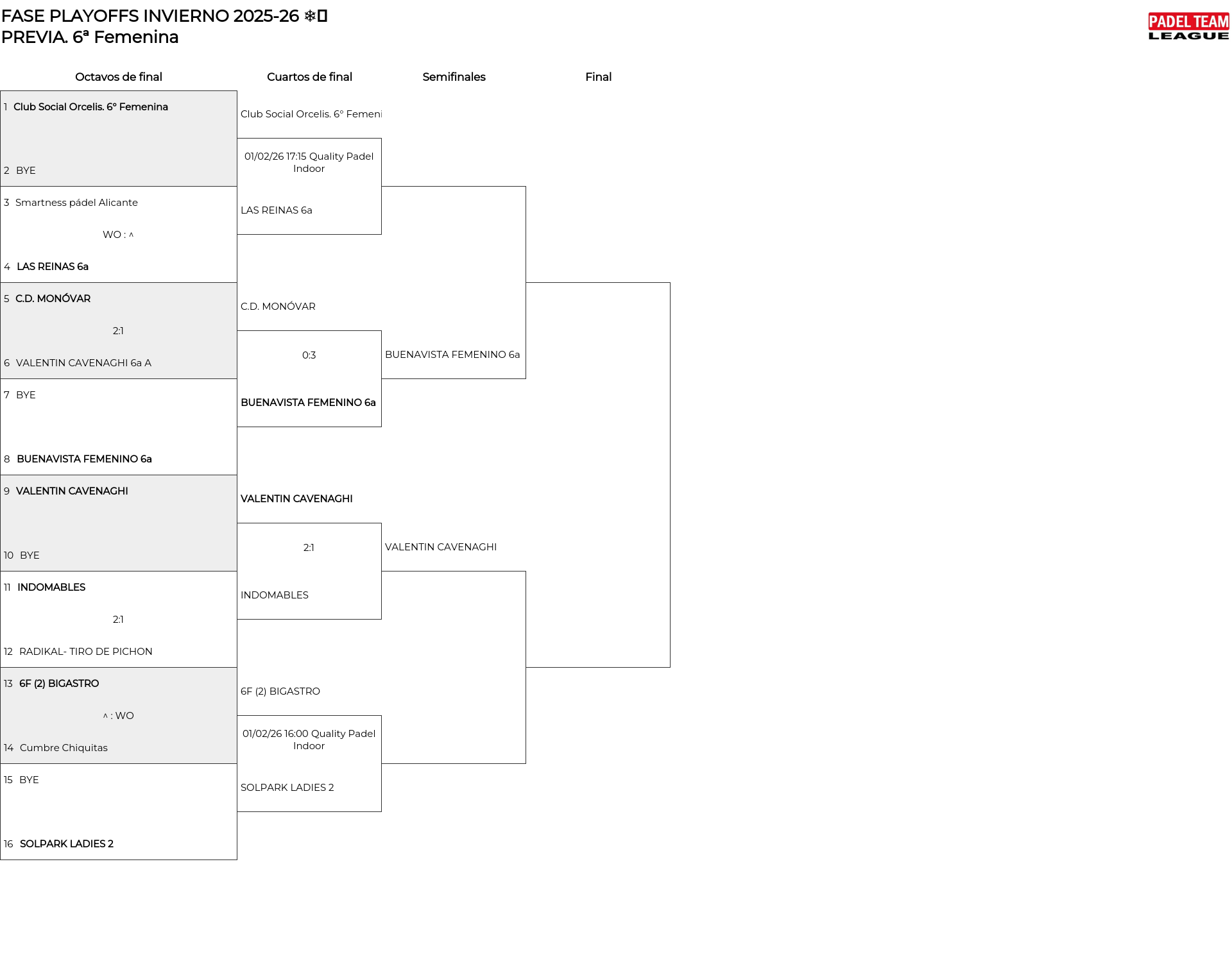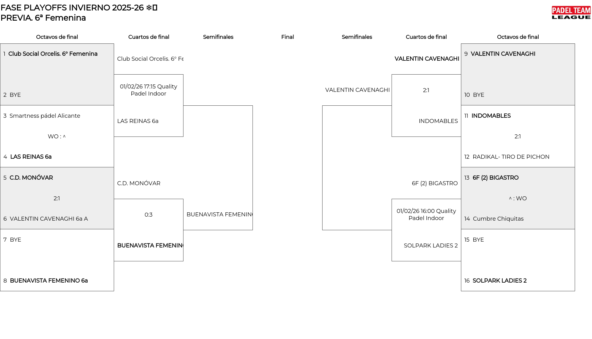 6ª Femenina . Desde 17/01/2026 00:00 hasta 22/02/2026 00:00