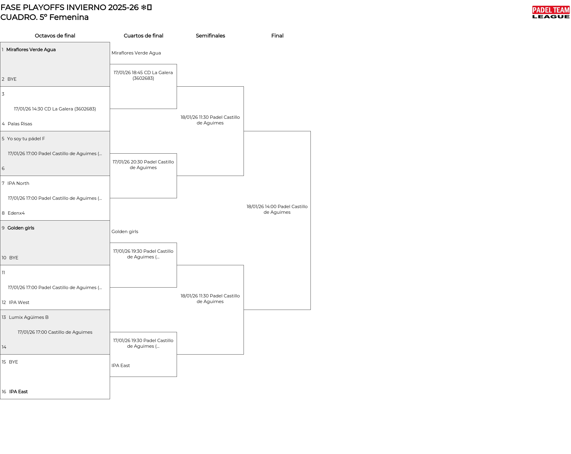 Cuadro principal 5º Femenina